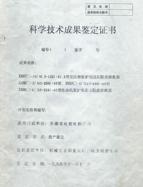 撫順電瓷廠電瓷電器公司是原機(jī)械工業(yè)部定點(diǎn)生產(chǎn)高壓隔離開關(guān)、高壓熔斷器、絕緣子、避雷器的骨干企業(yè)之一。生產(chǎn)歷史悠久,技術(shù)力量雄厚,產(chǎn)品質(zhì)量可靠,產(chǎn)品遍及全國(guó),遠(yuǎn)銷國(guó)處。具備高壓隔離開關(guān)、高壓熔斷器的設(shè)計(jì)、開發(fā)及批量生產(chǎn)的能力。擁有英國(guó)BRUSH公司具有國(guó)際先進(jìn)水平的高壓熔斷器制造技術(shù)和生產(chǎn)線關(guān)鍵設(shè)備,完備的檢測(cè)儀器。能夠批量生產(chǎn)符合國(guó)家和國(guó)際標(biāo)準(zhǔn)的3.6kv-40.5kv各種規(guī)格的戶內(nèi)外高壓隔離開關(guān)、高壓限流熔斷器系列產(chǎn)品。產(chǎn)品在國(guó)家高壓電器質(zhì)量監(jiān)督檢測(cè)中心通過(guò)全部型式并取得了兩部鑒定和型號(hào)證書,是國(guó)家經(jīng)貿(mào)委城農(nóng)網(wǎng)改造的推薦產(chǎn)品,通過(guò)了ISO9002國(guó)際質(zhì)量體系認(rèn)證,曾榮獲機(jī)械部科技進(jìn)步二等獎(jiǎng)和地方優(yōu)秀新產(chǎn)品獎(jiǎng)。